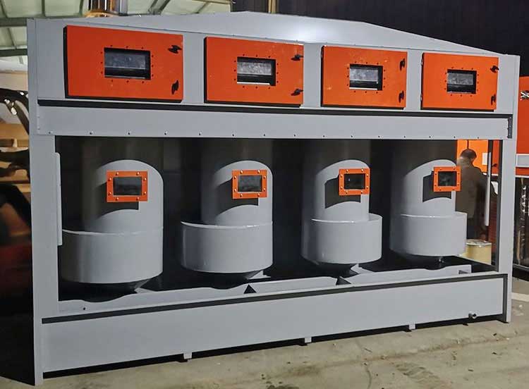 3米長水旋柜四、氣旋噴漆柜亦叫氣旋混動噴漆柜,氣旋混動噴漆水簾柜,氣旋水簾柜噴漆設備。氣旋噴漆柜作業時,粉塵或廢氣在負壓風機牽引力的作用下,噴漆噴膠產生一部分乳化性廢氣顆粒隨水簾落到水池中,大部分廢料進入高速旋流導軌裝置,漆霧、旋風與水在高速旋轉的進行氣液乳化反應。氣動混流裝置的高速運轉,使得漆霧與旋轉液體充分混合,在離心力的作用下達到漆液分離。氣旋桶內部采用水泵循環給水,由安裝在隔水層底部的螺旋噴嘴噴出來,漆霧分離出來的粉塵顆粒物下沉到水箱底部,分離后的氣體進入環保填充料隔水層,然后進入后段的廢氣處理設備。