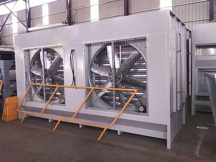 1、結(jié)構(gòu):由柜子、風(fēng)機、水簾板、水泵、控制開關(guān)組成。