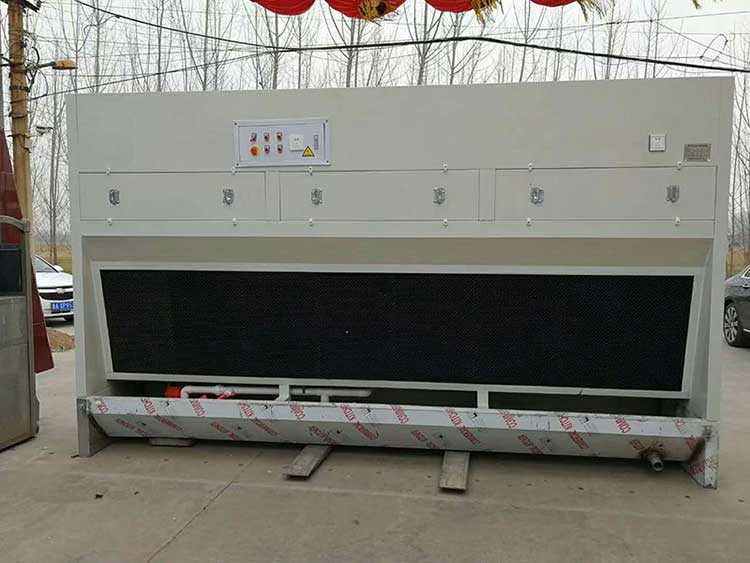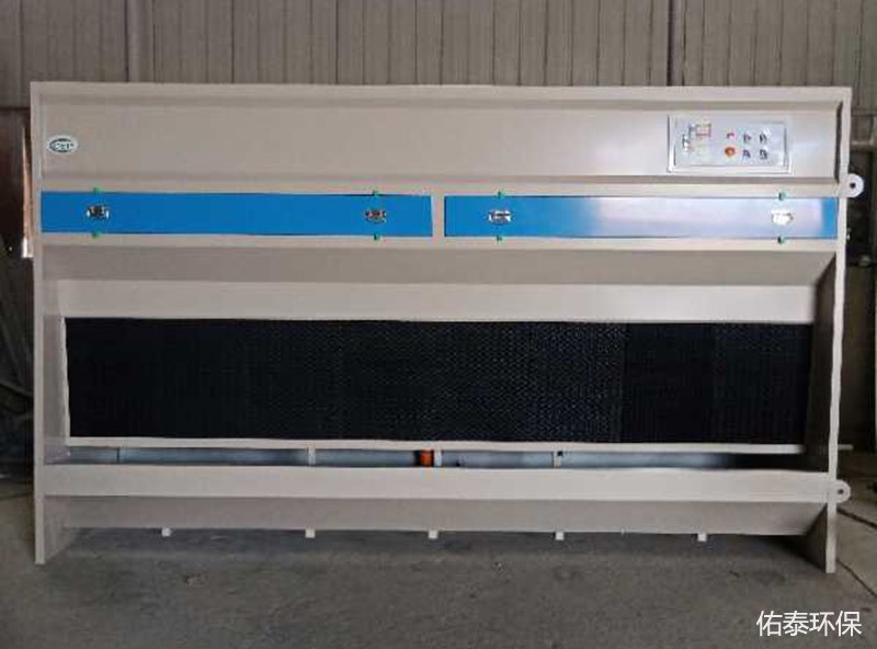 石材打磨除塵柜前面有一層15cm厚塑料濕簾,這種水簾片水簾片采用塑料材質,網孔為六角形蜂巢狀網孔,前后網孔之間為孔道,孔道側壁具有透水孔,此結構的水簾片便于通風及水的滲透,采用塑料材質的水簾片抗霉變、經久耐用而且可清洗,降低了使用成本,改善了長期使用效果。