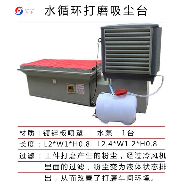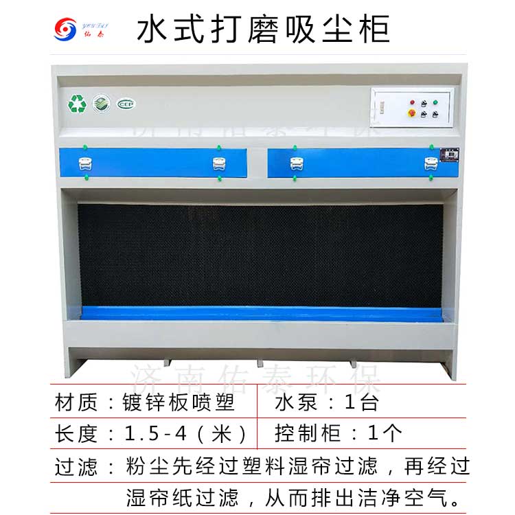 把工件放在水式打磨柜的工作臺面上,產(chǎn)生的粉塵、大量的高濃度含苯有害物質(zhì),被吸入設(shè)備內(nèi),經(jīng)過多層水洗過濾裝置,使粉塵變?yōu)橐后w狀態(tài)排出,工作區(qū)不再有粉塵的飄揚,從而改善了打磨車間的工作環(huán)境,保證打磨員的身體健康。也能提高生產(chǎn)效率和降低生產(chǎn)成本,具有投資小、運行成本低、安裝方便靈活的特點。